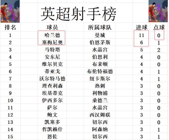 射手榜方面,哈兰德进球势头不减,今天又是梅开二度,成为赛季首个进球上双的球员,8轮11球稳居榜首。塞梅尼奥6球,比哈兰德少了近一半,排在第2。马特塔5球第4,维尔贝克,安东尼,蒂亚戈和沃尔特马德4球并列第4。哲凯赖什今天无力进球,还是和埃基蒂克,恩佐等人3球刚好挤入前十。